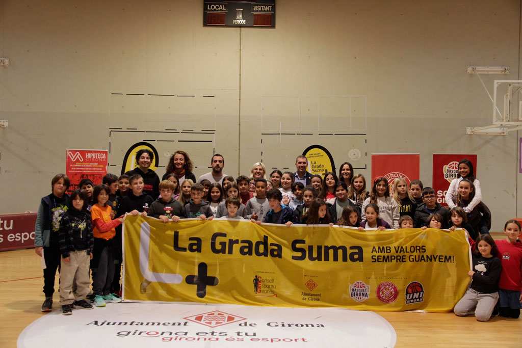 Més de 400 escolars participen en l’11a edició del programa “La Grada Suma”, iniciativa organitzada per l’Ajuntament de Girona i el Consell Esportiu del Gironès (CEG) i que compta amb la implicació de l’Spar Girona, el Bàsquet Girona i el Girona FC. Aquest matí el regidor d’Esports i Joventut de l’Ajuntament de Girona, Àdam Bertran Martínez, i la presidenta del CEG, Maria Sánchez Canaleta, han presentat la proposta d’aquest curs, al costat de l’entrenadora assistent i la jugadora de l’Spar Girona, Laia Palau i Ainhoa López; de la CEO del Bàsquet Girona, Stefi Batlle, i el president del Girona FC, Delfí Geli.