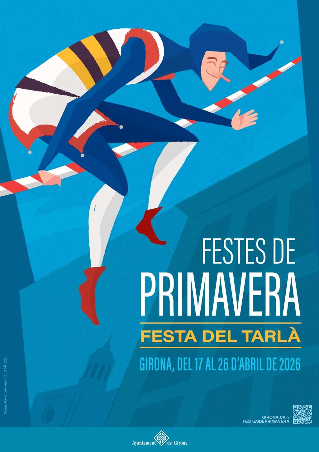“Volia que el Tarlà transmetés alegria, frescor i proximitat. Per això està en posició alçada, saludant amb la mà amb un gest alegre que convida tothom a participar en les Festes de Primavera. Els colors són vius, amb predomini del blau, com el vestit del Tarlà, i amb elements de ciutat, com la Catedral i les façanes del carrer de l'Argenteria”, ha explicat l'autor del cartell, Albert Castro.