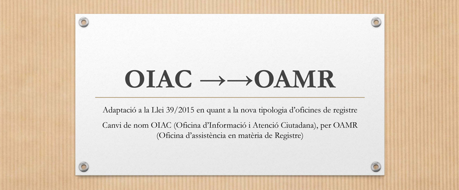 L'Oficina d'Informació i Atenció Ciutadana (OIAC) ha canviat de nom però no de funcions i ha passat a anomenar-se Oficina d'Assistència en Matèria de Registre (OAMR).
