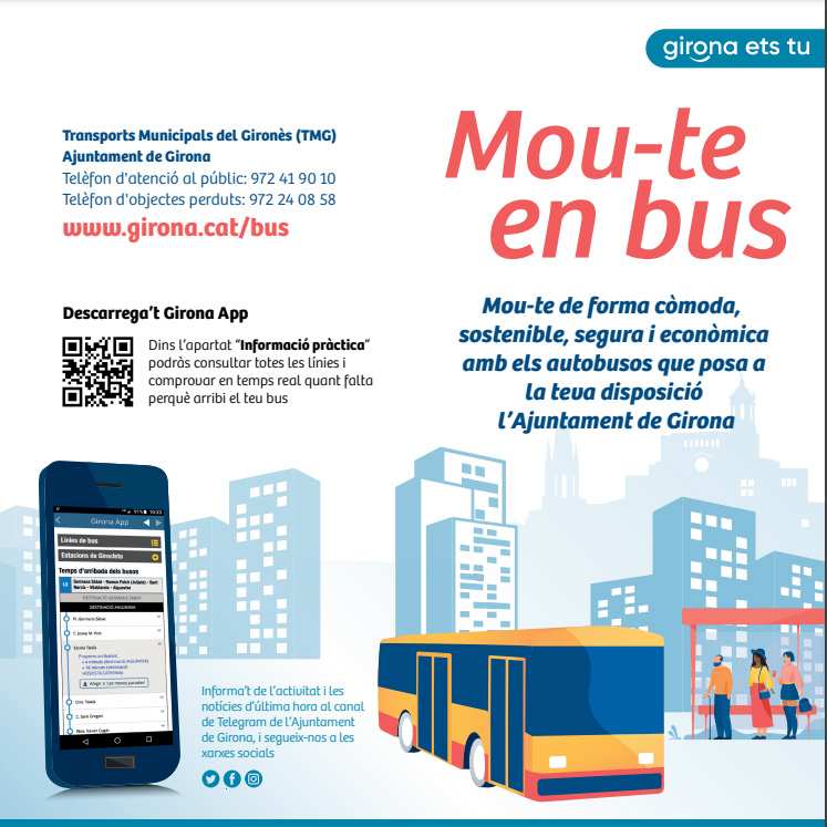 L’Ajuntament de Girona ha començat aquesta setmana una campanya de difusió per promoure l'ús del bus urbà a la ciutat. Girona compta actualment amb dotze línies de bus que connecten tots els barris i enllacen el municipi amb Salt, Sarrià de Ter, Sant Julià de Ramis, Vilablareix, Aiguaviva i Fornells de la Selva.