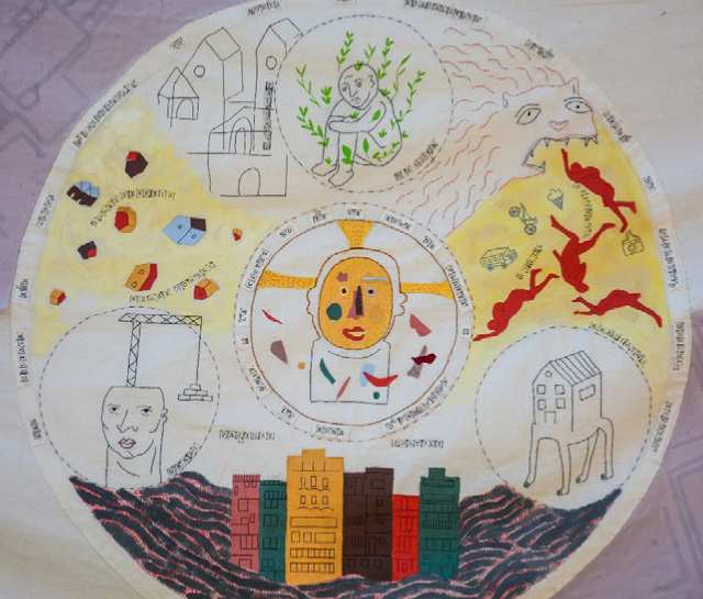 Teixint la Memòria Col·lectiva és una producció artística, participativa i comunitària, feta de les històries i vivències dels veïns i veïnes del barri. La memòria de les transformacions del barri s’ha plasmat en dibuixos d’un nou Tapís de la Creació. Un tapís teixit de forma col·laborativa per reflectir els records, anhels i projeccions de la gent que hi viu i conviu.