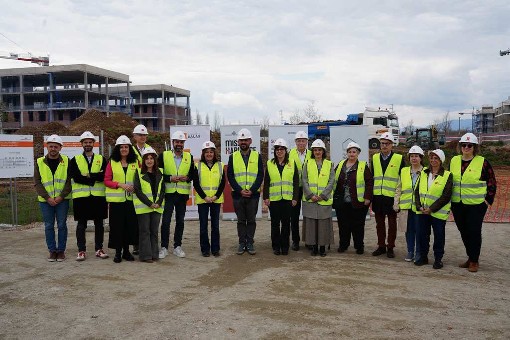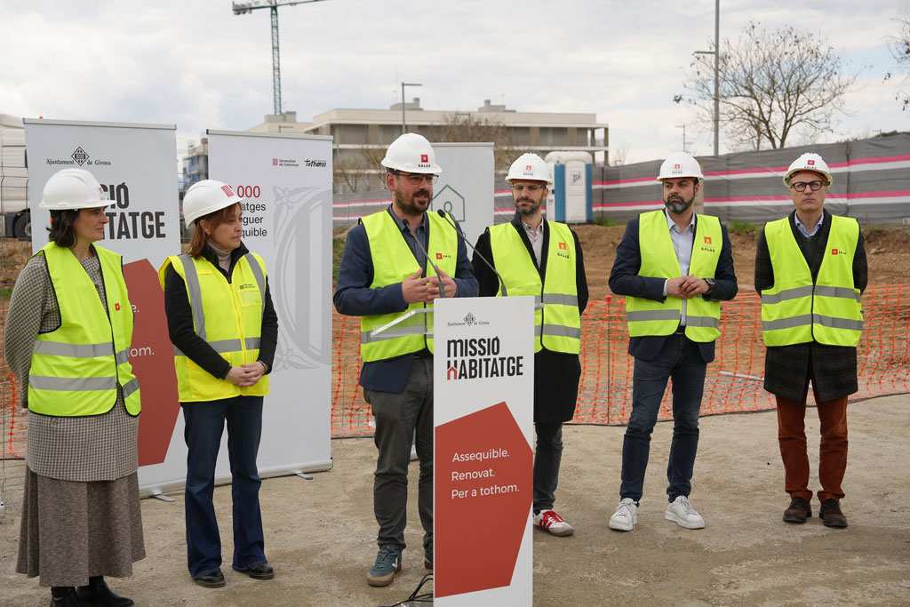 Aquest migdia, l’alcalde de Girona, Lluc Salellas i Vilar; la consellera de Territori, Habitatge i Transició Ecològica de la Generalitat de Catalunya, Sílvia Paneque; la directora de la Fundació SALAS, Clara Muñoz Cirici, i el president de la Fundació Nou Lloc, Pere Esteve, han participat en l’acte de col·locació de la primera pedra dels habitatges.