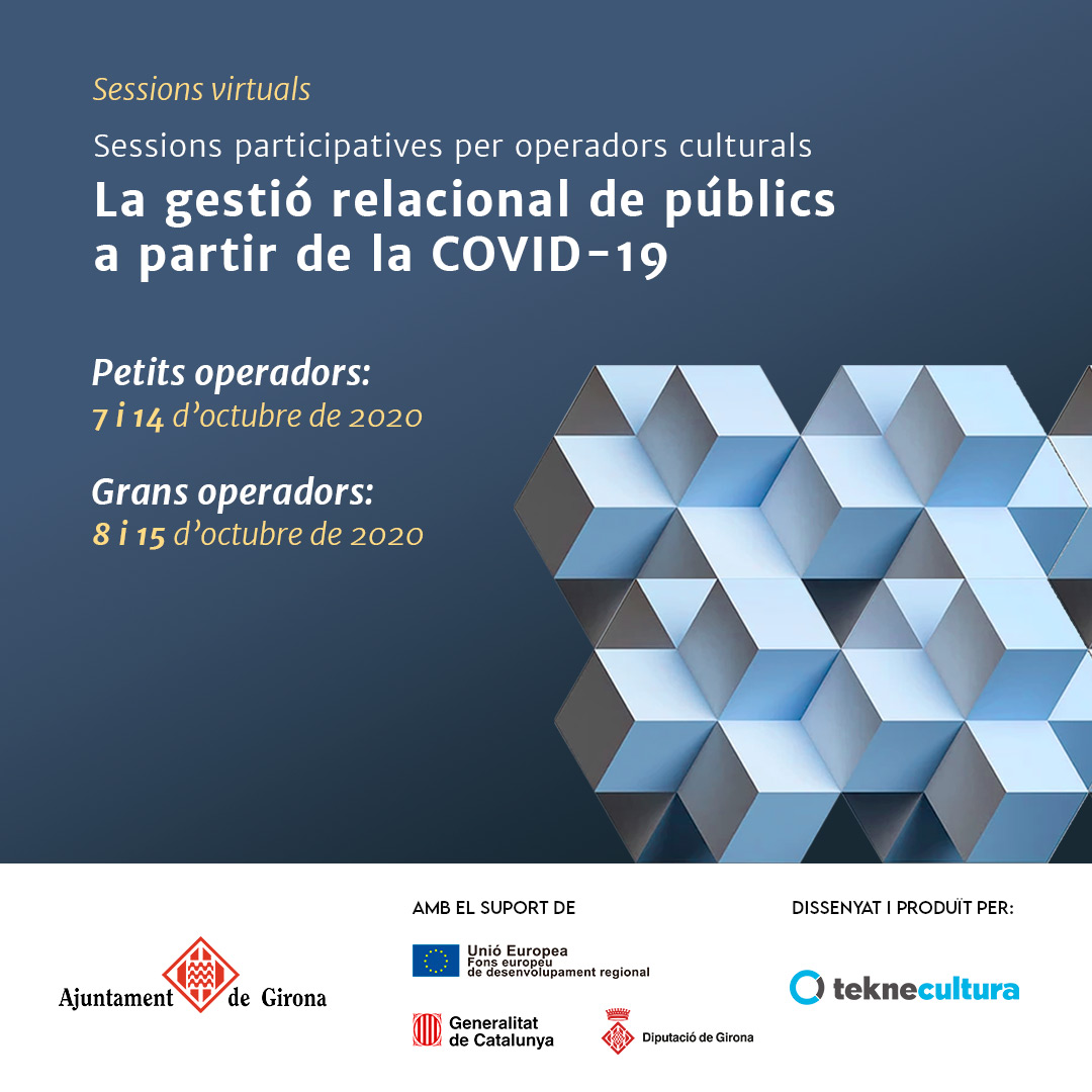 El simposi virtual sobre el desenvolupament de públics en el nou escenari cultural marcat per la COVID-19, organitzat per l’Ajuntament de Girona en el marc del PECT Indústries Culturals i Creatives, es va celebrar el 20 i 21 d’octubre amb la participació de 521 inscrits. En la primera jornada es van connectar 266 usuaris únics amb una mitjana de participació d'entre 160 i 200 espectadors; i en la segona jornada es van connectar 207 usuaris únics amb una participació mitjans d’entre 90 i 150 espectadors.