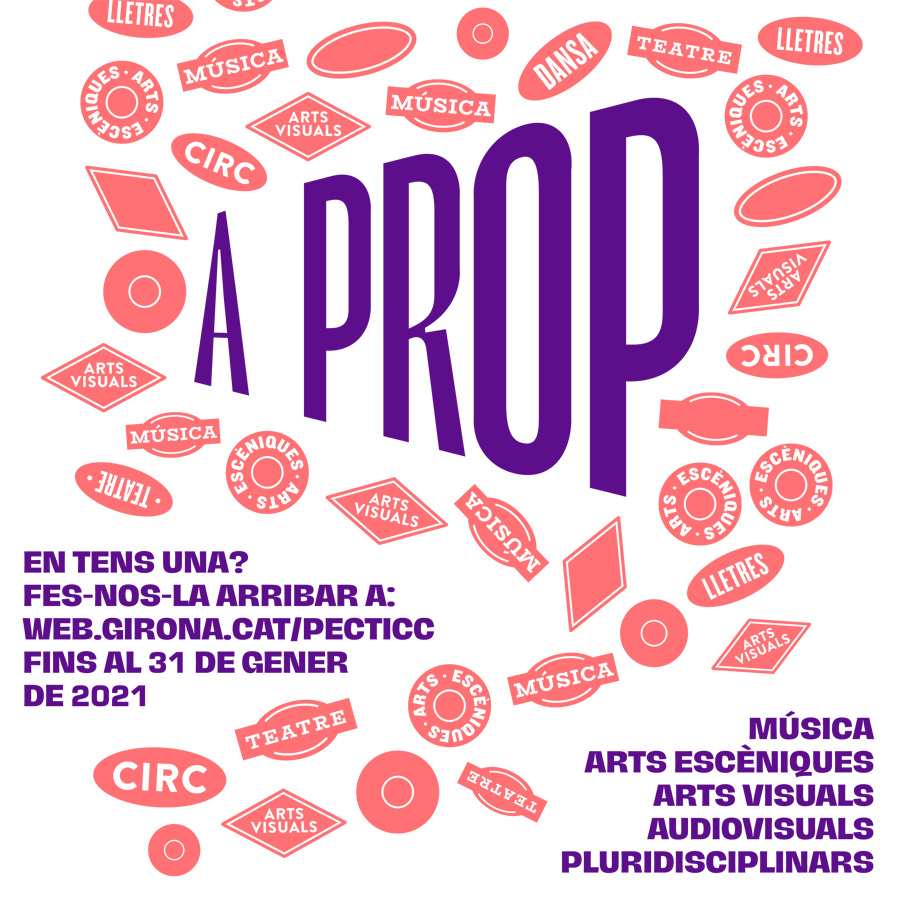 L’“A prop” és una programació cultural de petit format que vol mostrar les propostes artístiques de creadores i creadors emergents de les comarques gironines als diversos barris de Girona. A través dels centres cívics, de les biblioteques municipals i dels espais joves de la ciutat, aquest cicle s’ofereix com un aparador per als creadors, dóna un impuls a la visibilitat d’artistes amb poc recorregut professional i, alhora, apropar la cultura a tots els gironins i gironines.