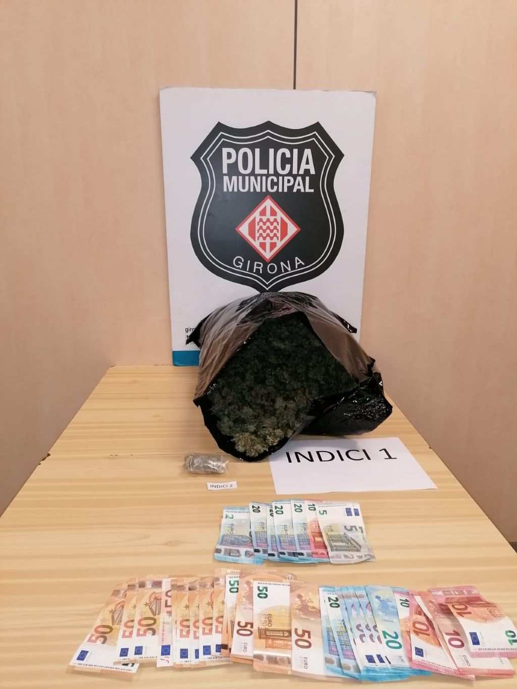 La Policia Municipal de Girona ha detingut aquesta tarda tres persones per un delicte contra la salut pública. Les tres persones detingudes portaven 2.852,162 grams de marihuana a sobre, a més de 1.080 euros en metàl·lic.