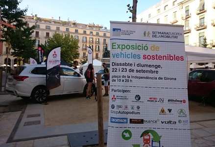 La plaça de la Independència va acollir una fira de vehicles sostenibles (elèctrics, híbrids i de gas) i diverses xerrades sobre el vehicle elèctric els dies 22 i 23 de setembre de 2018, tancant les activitats de la Setmana Europea de la Mobilitat a Girona d’enguany.