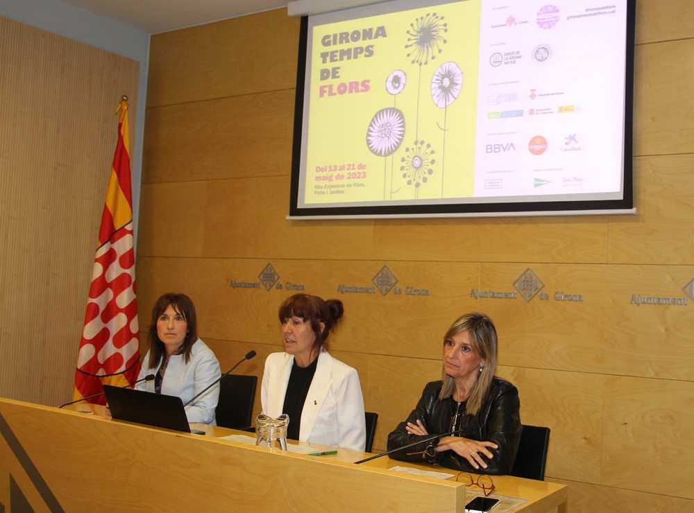 Girona, Temps de Flors” celebrarà del 13 al 21 de maig la 68a edició amb 126 projectes florals repartits en 106 espais. Aquest 2023 la mostra arribarà a tretze barris i es podrà visitar cada dia des de les 10 h fins a les 22 h, un horari que s’allargarà fins a les 24 h els dos dissabtes i el dimecres 17 de maig. Aquest matí l’alcaldessa de Girona, Marta Madrenas, la vicepresidenta quarta de la Diputació de Girona, M. Àngels Planas, i la regidora de Promoció Econòmica de l’Ajuntament de Girona, Glòria Plana Yanes, han presentat la nova edició.