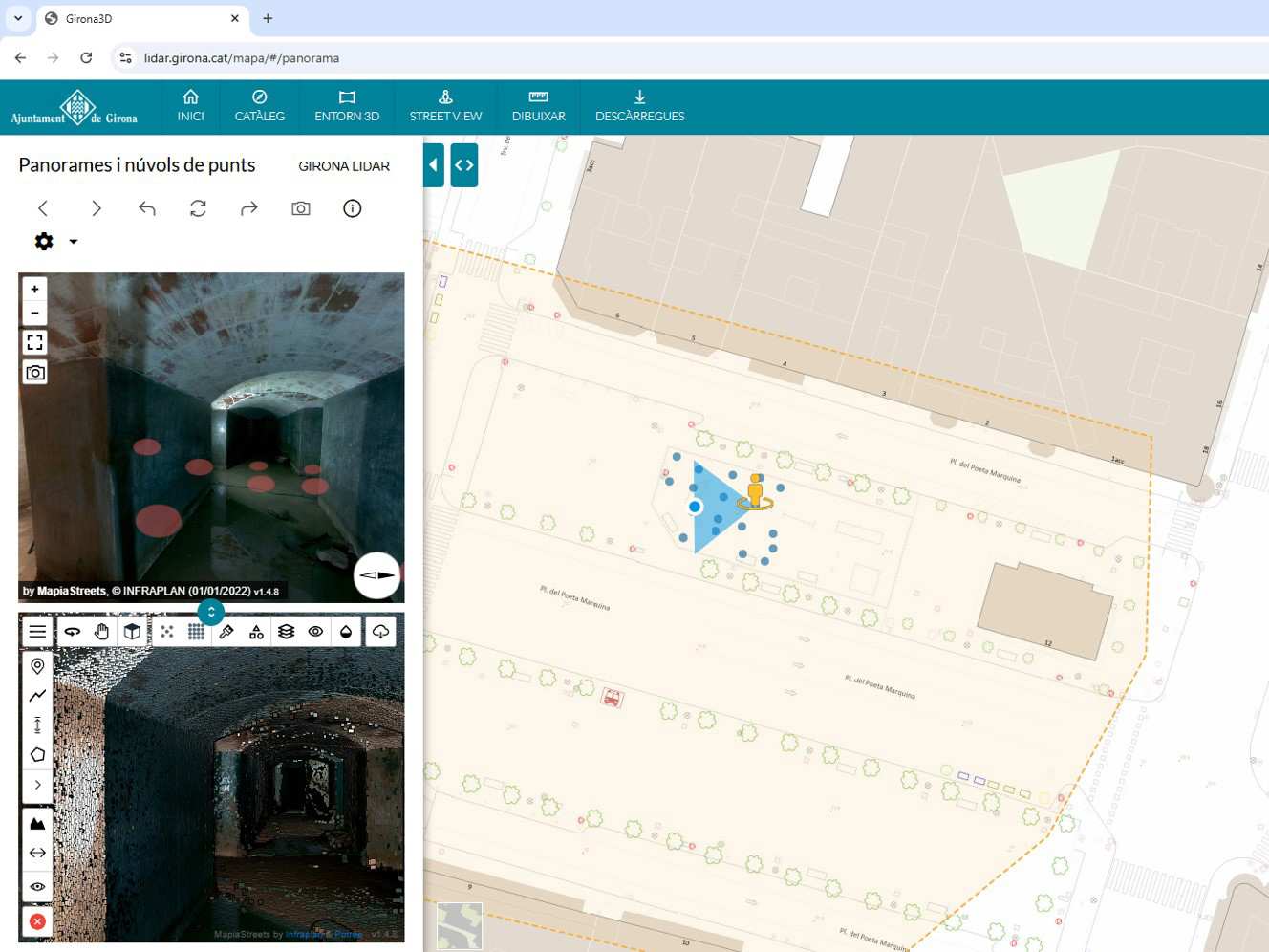 Els espais inclosos al Visor LiDAR Girona, com ara els refugis antiaeris de la plaça del Poeta Marquina i el jardí de la Infància, la Mina del Calvari, Torre Gironella o la cisterna dels Caputxins, s’han generat a partir de tècniques avançades d’escanejat làser (LiDAR) i d’imatges panoràmiques. Aquestes eines permeten enriquir la base gràfica georeferencial del municipi i, alhora, oferir recursos educatius i divulgatius.