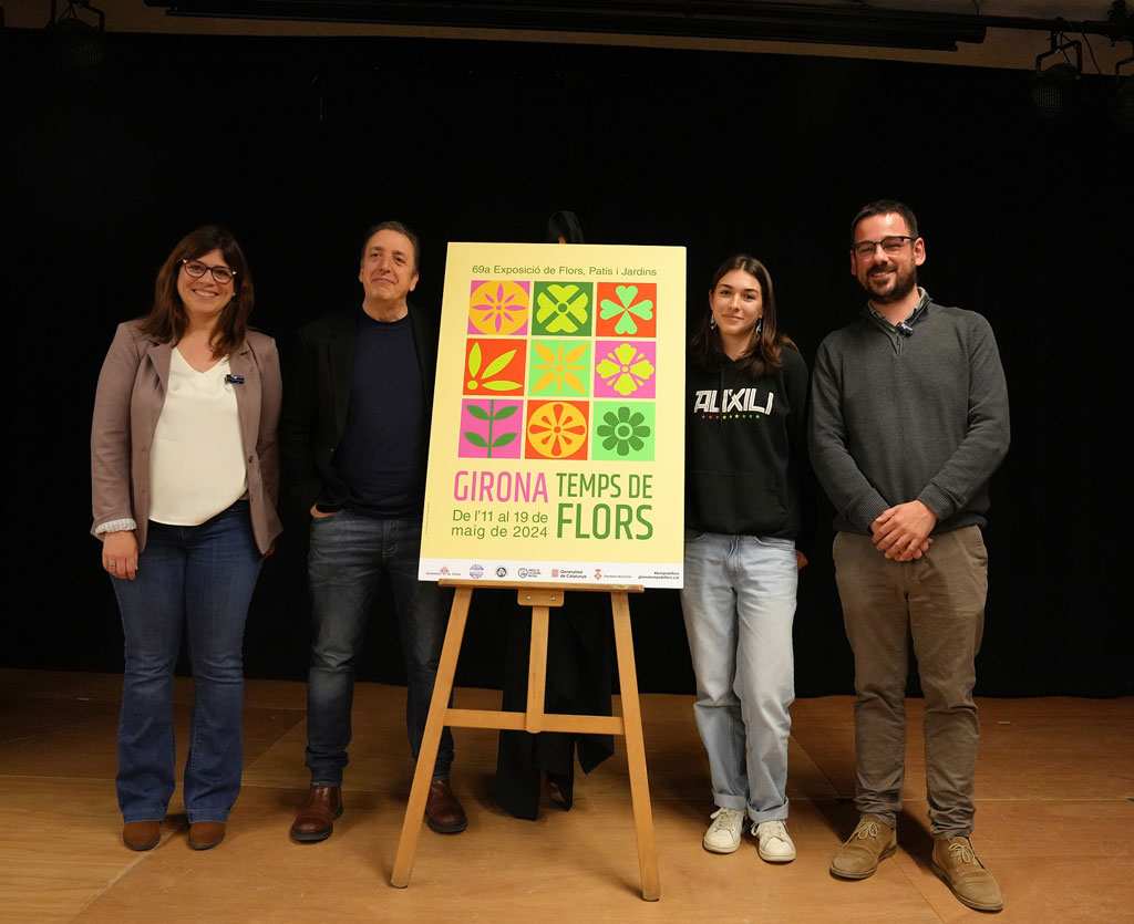 Un mosaic floral fet de formes geomètriques il·lustra el cartell de la 69a edició de “Girona, Temps de Flors”. Aquest matí, l’alcalde de Girona, Lluc Salellas i Vilar, acompanyat de la vicealcaldessa i regidora de Promoció Econòmica de l’Ajuntament de Girona, Gemma Geis i Carreras, ha descobert la peça guanyadora al costat del director de l’Institut Santiago Sobrequés, Joan Cumeras, en un acte que s’ha fet al centre educatiu.