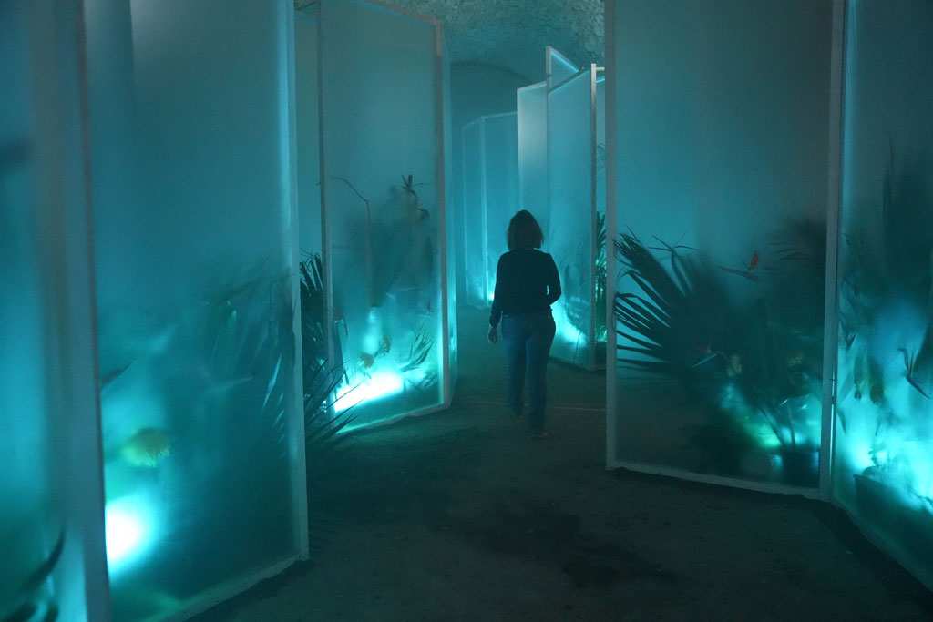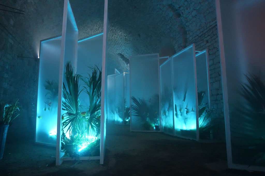 Per això, s’ha ocupat tota la sala gran dels soterranis de la catedral mitjançant diverses estructures tridimensionals que representen blocs de gel, distribuïdes de manera irregular, que sembla que es van desfent al llarg dels 30 metres d’espai. Els tipus de flors que decoren l’espai són la kentia, la levistonia, la strelitzia, el gladiol, el crisantem, l’epiphilium i el carex.