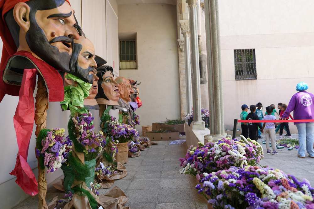 La creació d’aquest muntatge s’ha realitzat a través d’un dels serveis educatius que s’ofereixen des de l’Ajuntament de Girona a les escoles. El projecte ha estat ideat per l’artista Nuxu Perpinyà, i els infants s’encarreguen de crear les composicions florals i a plasmar-les entre els capgrossos. Es tracta d’un muntatge que està en constant construcció durant tota aquesta setmana, ja que cada dia diferents classes d’infants d’educació infantil i primària hi van a confeccionar més flors per vestir de colors vius els capgrossos que estan repartits pels diferents espais de la Casa Solterra fins a arribar al claustre de Sant Francesc.