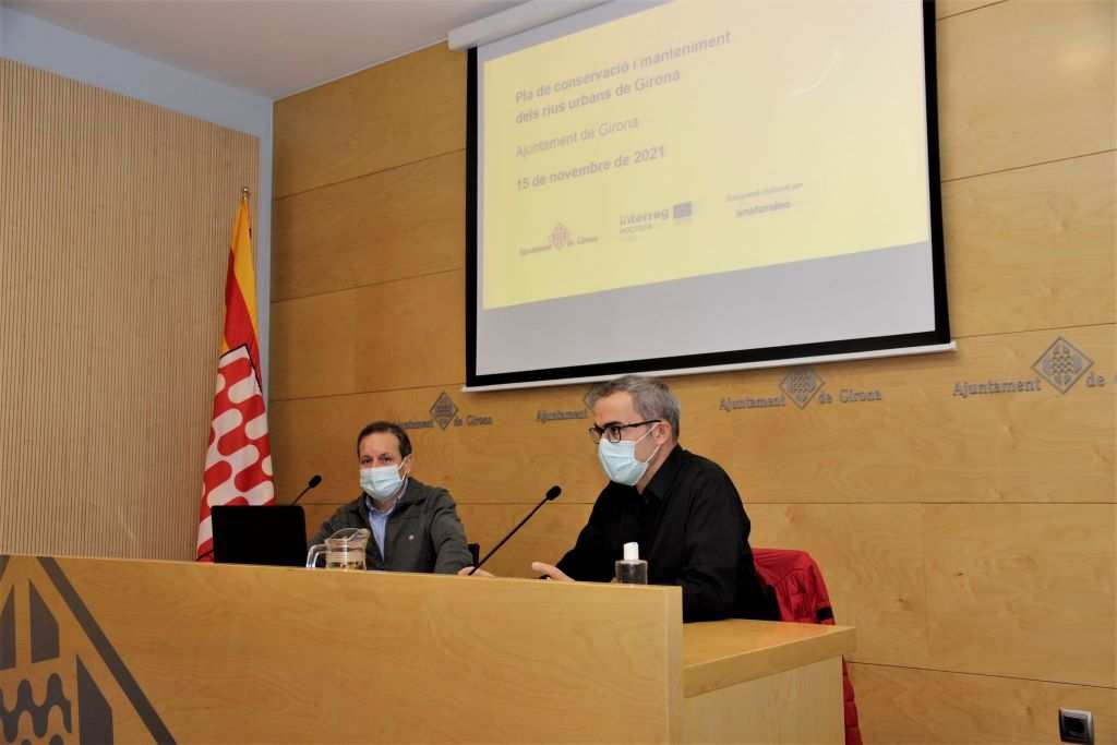 El regidor de Sostenibilitat de l’Ajuntament de Girona, Martí Terés, i el director tècnic de Naturalea, l’empresa redactora del projecte, Albert Sorolla, han presentat aquest migdia les principals conclusions del Pla i com es plasmarà en la gestió municipal.