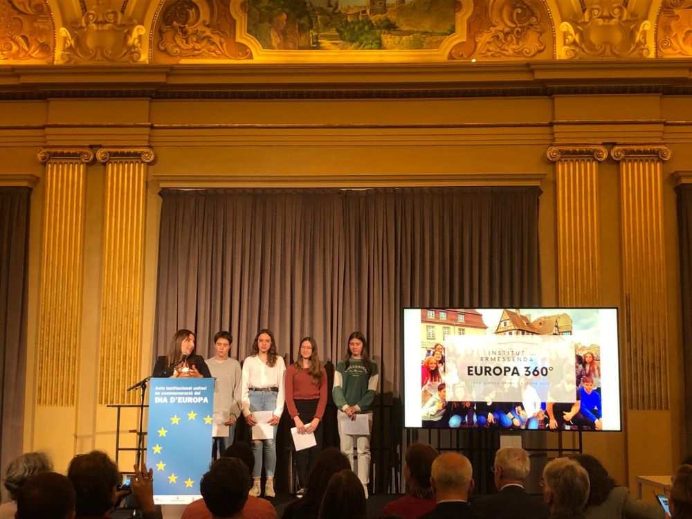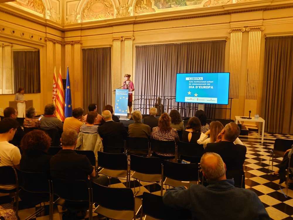 A més, s’ha aprofitat la commemoració de l’efemèride per donar a conèixer el projecte guanyador de la Beca Premi d’Europa 2022, impulsada per l’Ajuntament de Girona. El treball que va rebre més punts va ser el de l’alumnat i professorat de l’Institut Ermessenda de Girona, que porta per títol “Europa 360º”. Durant l’acte, estudiants del centre han explicat la proposta.