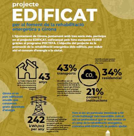 L’Ajuntament de Girona és coordinador del projecte transfronterer Edificat. Els socis del consistori en aquesta iniciativa són la Communauté Urbaine Perpignan Metropole Méditerranée, que agrupa 36 municipis al voltant de Perpinyà; el pol de competitivitat Derbi, que opera a la regió Occitanie / Pyrénées-Méditerranée i agrupa empreses, laboratoris, universitats, autoritats locals i altres entitats que participen en el desenvolupament del sector de les energies renovables, i el Clúster de l’Energia Eficient de Catalunya (CEEC), un ens que a través de la col·laboració entre empreses i entitats té com a objectiu impulsar l’àmbit de l’energia eficient.
