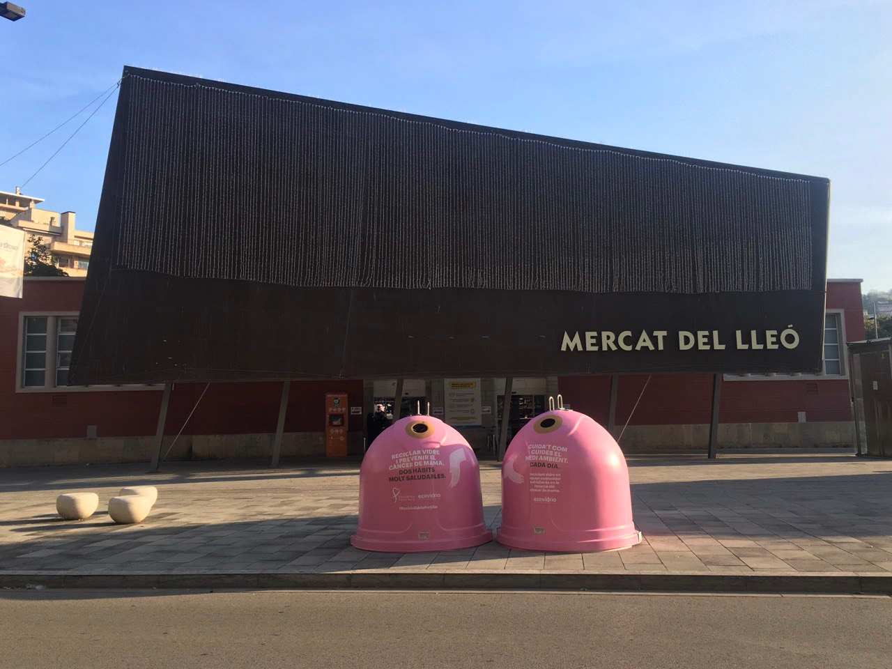 S’han instal·lat dos contenidors roses davant del Mercat del Lleó per fomentar el reciclatge i contribuir en la prevenció de la malaltia.