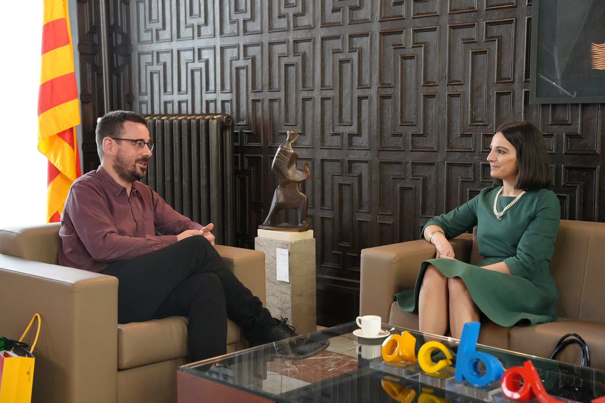 Lluc Salellas i Vilar i Sandra-Liliana Gătejeanu-Gheorghe s’han reunit al despatx d’Alcaldia.
