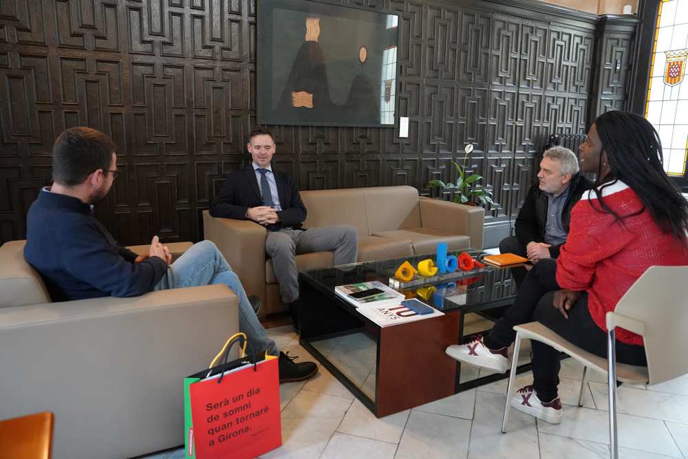 L’alcalde de Girona, Lluc Salellas i Vilar, ha rebut aquest migdia el cònsol general adjunt del Consolat d’Alemanya a Barcelona, Patrick Heinz. En la visita institucional, que ha tingut lloc al despatx d’Alcaldia, hi ha assistit també el tinent d’alcaldia i regidor de Talent, Innovació, Salut i Comunitat de l’Ajuntament de Girona, Xavier Aldeguer Manté, i la regidora d’Igualtat i Justícia Social, Amy Sabaly Balde.