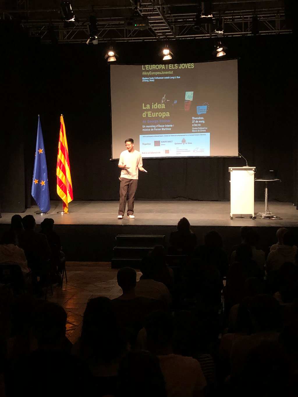 El jove influencer Long Li Xue ha conduït i dinamitzat la jornada, durant la qual també s’ha comptat amb l’exposició de la cap de comunicació de la Representació de la Comissió Europea a Barcelona, la Sra. Laura Rahola, sobre l’Any Europeu de la Joventut i amb la representació de l’obra de teatre La idea d’Europa, un monòleg basat en el llibre de George Steiner, a càrrec d’Oscar Intente.
