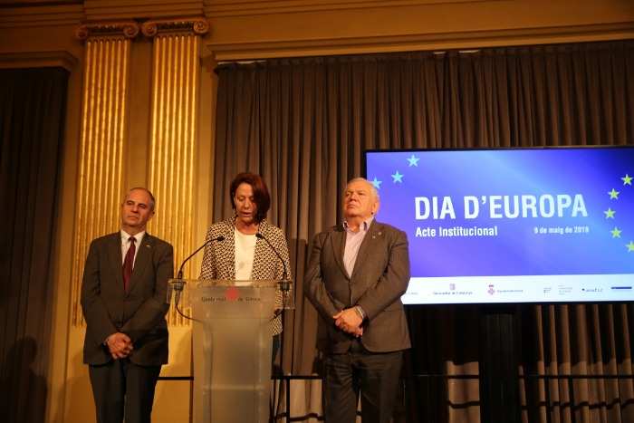 L’Ajuntament de Girona, la Diputació de Girona i la Generalitat de Catalunya a Girona han celebrat un any més de forma conjunta el Dia d’Europa a la ciutat. A l’acte institucional commemoratiu, que ha tingut lloc aquesta tarda al Saló de Descans del Teatre Municipal, hi han assistit l’alcaldessa de Girona, Marta Madrenas; el vicepresident primer de la Diputació de Girona, Fermí Santamaria, i el director dels Serveis Territorials d’Interior, Albert Ballesta, en representació del Govern de la Generalitat de Catalunya a Girona.
