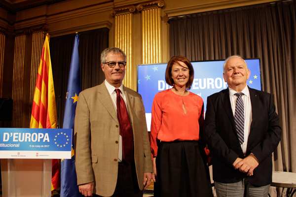 L’Ajuntament de Girona, la Diputació de Girona i la delegació de la Generalitat de Catalunya a Girona han celebrat un any més de forma conjunta el Dia d’Europa a la ciutat. L’acte institucional commemoratiu, que ha tingut lloc aquesta tarda al Saló de Descans del Teatre Municipal, ha estat presidit per l’alcaldessa de Girona, Marta Madrenas; el president accidental de la Diputació de Girona, Fermí Santamaria, i el delegat del Govern de la Generalitat a Girona, Eudald Casadesús.