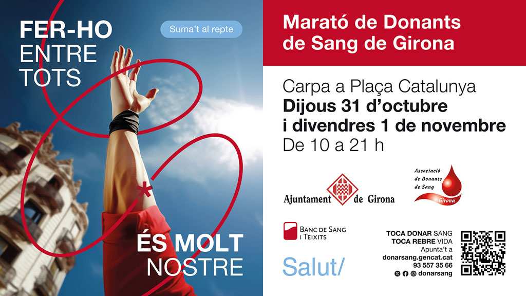 La col·lecta de Girona s’emmarca dins la campanya actual del Banc de Sang i Teixits que té per lema “Fer-ho entre tots és molt nostre” i que vol ser un símbol de l’esforç col·lectiu que representa la donació de sang, i la cohesió i la connexió que aquest gest suposa entre donants i receptors. La necessitat de sang no s’atura i amb un sol gest, cada donant pot salvar tres vides.