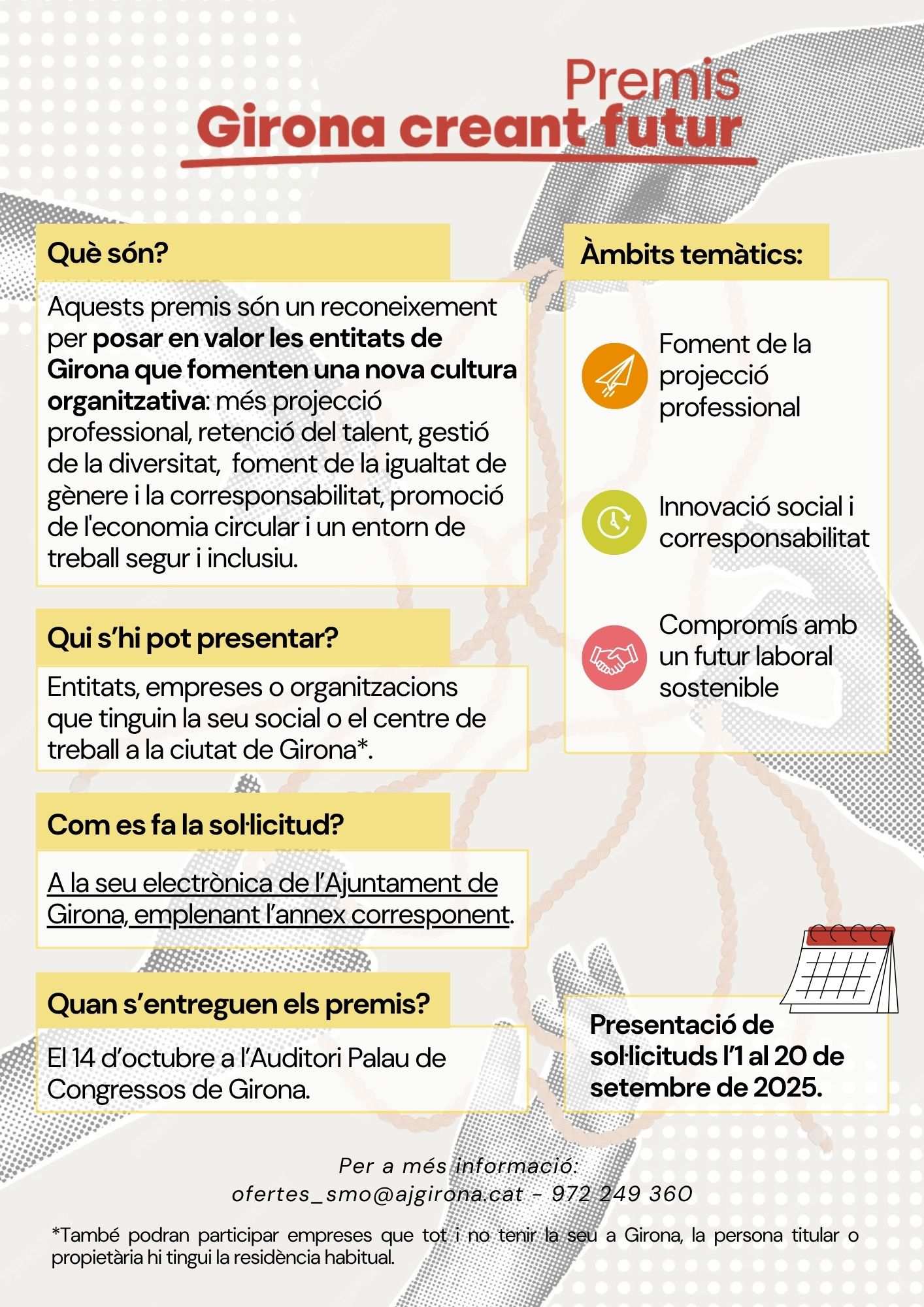 Premis destinats a reconèixer i posar en valor les entitats de Girona que en els darrers anys han participat en el foment d'una nova cultura organitzativa que vetlla per la projecció professional, la retenció del talent, la gestió de la diversitat, el foment de la igualtat de gènere i la corresponsabilitat, la promoció de l'economia circular i un entorn de treball segur i inclusiu. Hi ha tres categories de premis: foment de la projecció professional; innovació social i coresponsabilitat, i compromís amb un futur laboral sostenible.