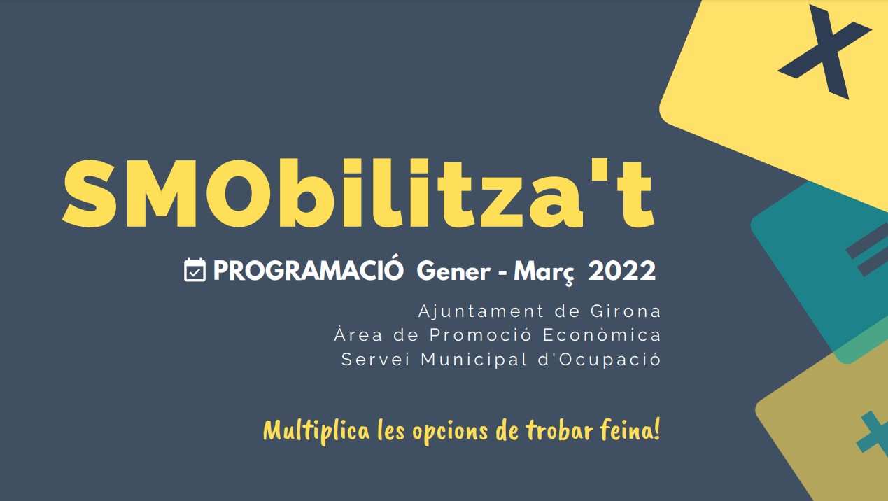 L’Ajuntament de Girona presenta la programació SMObilitza’t per al primer trimestre de l’any 2022, amb 20 activitats gratuïtes per millorar l’ocupabilitat de les persones en recerca de feina. El programa, que combina el format presencial i virtual, té per objectiu oferir eines i recursos per a la recerca de feina, promoure l’autoconeixement i la definició d’objectius laborals concrets i realistes i oferir informació actualitzada dels principals sectors d’ocupació.