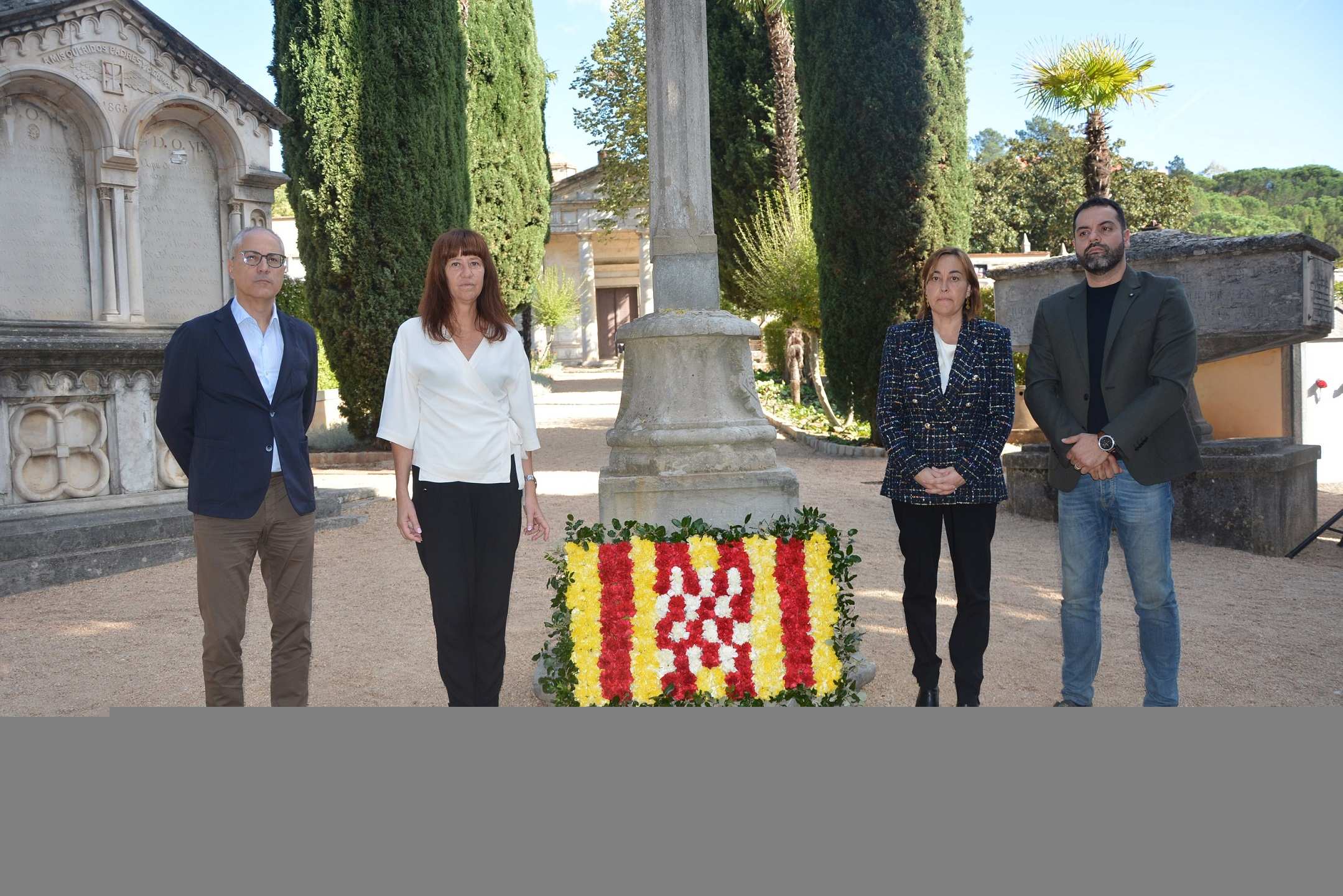L’alcaldessa de Girona ha presidit la tradicional ofrena floral al cementiri vell de la ciutat amb motiu de la diada de Tots Sants acompanyada de diversos regidors i regidores del consistori