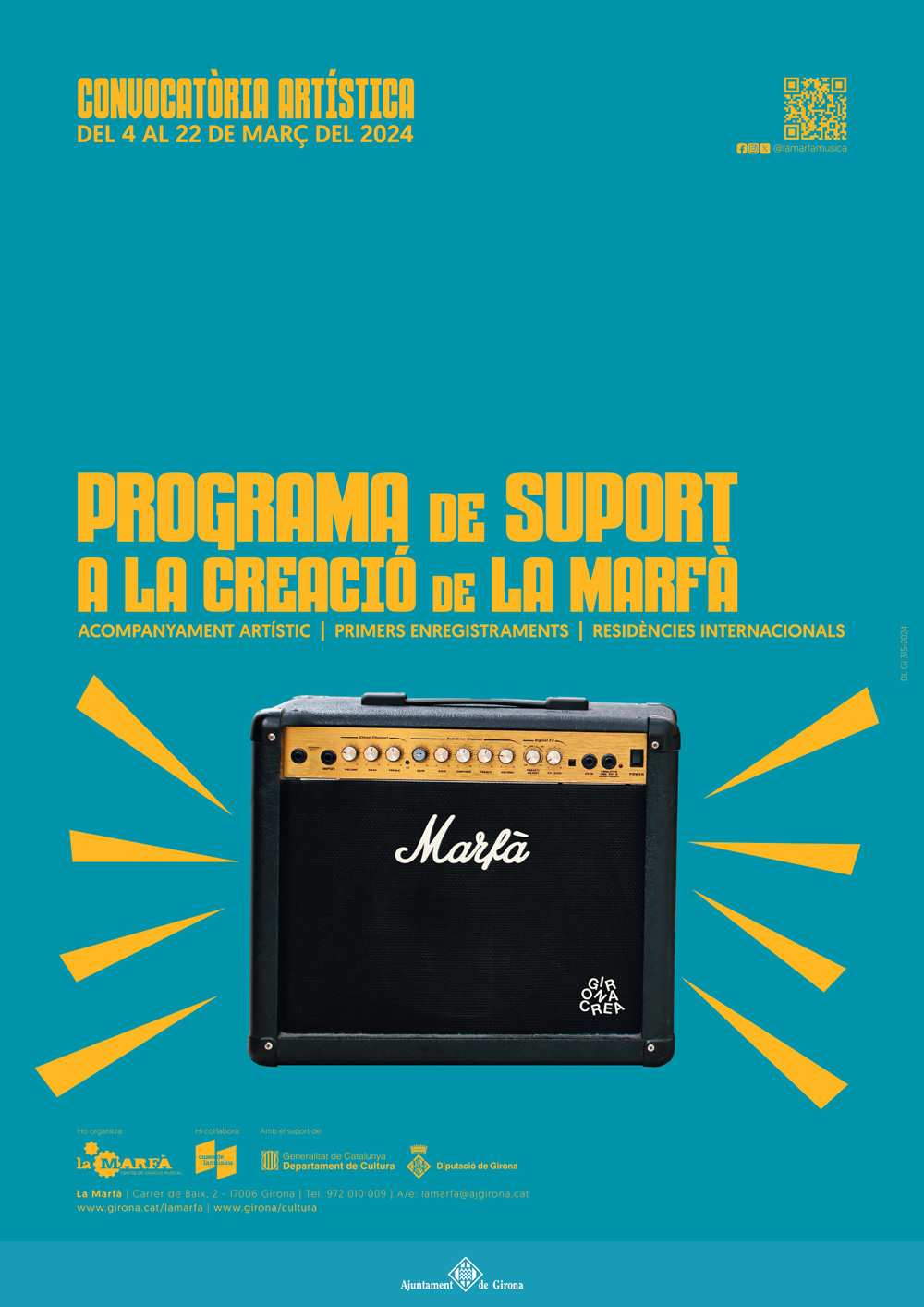 La Marfà – Centre de Creació Musical de l’Ajuntament de Girona ha obert una nova convocatòria per seleccionar els grups i formacions musicals que formaran part dels programes de suport a la creació per a l’any 2024. Es tracta d’una convocatòria anual d’ajudes per a projectes musicals que inclou diferents modalitats. Les sol·licituds per participar-hi ja es poden presentar i hi ha temps fins al 22 de març.