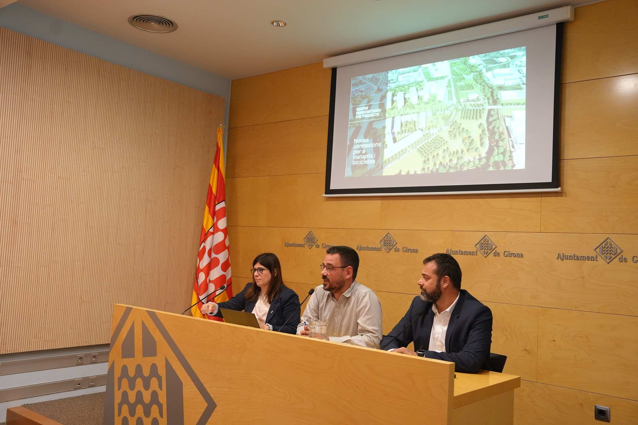 L’alcalde de Girona, Lluc Salellas i Vilar; la vicealcaldessa i regidora de Promoció Econòmica i Serveis Jurídics, Gemma Geis Carreras, i el tinent d’alcaldia i regidora de Cultura de l’Ajuntament de Girona, Quim Ayats i Bartrina, han presentat aquest matí la proposta de reforma de l’espai públic de l’entorn del nou Campus de Salut i Hospital Josep Trueta.
