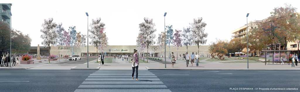 El projecte de reurbanització incorpora quatre fileres d’arbres de gran port a la plaça que accentuaran aquesta sensació d’avinguda de l’estació. La considerable ampliació de la vorera de la zona d’accés de l’estació per la plaça d’Espanya, amb una forma onejada, és també un dels punts destacats.