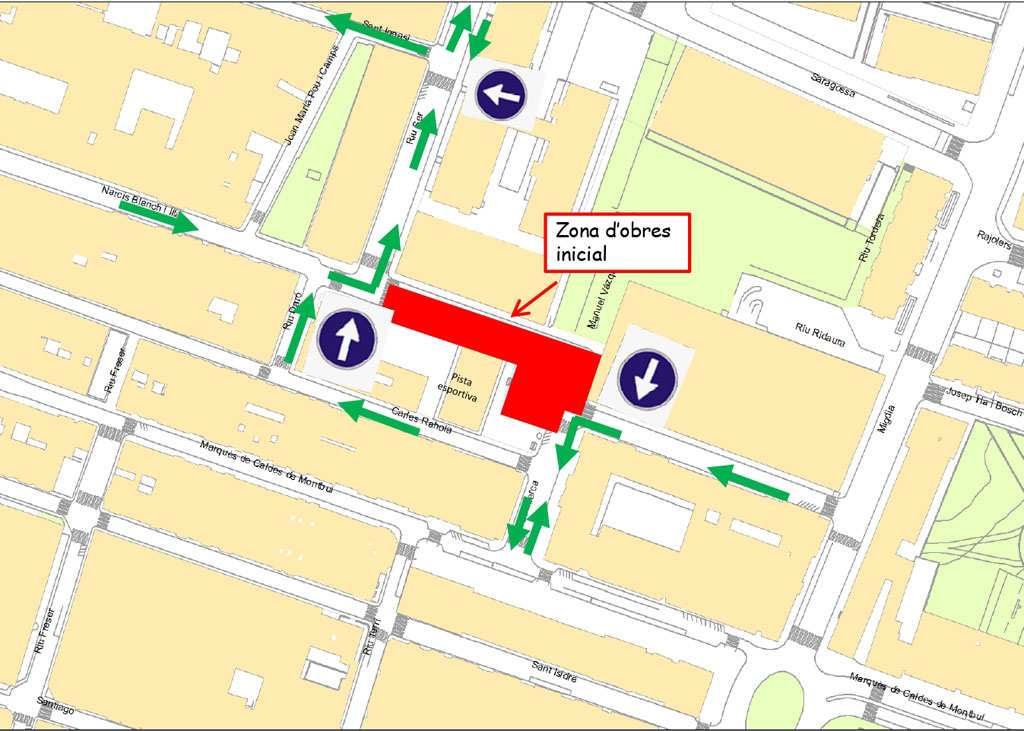 Respecte als vehicles que circulin pel carrer de Narcís Blanch des del carrer de Barcelona, s’hauran de desviar pel carrer del Riu Ser, que esdevindrà de sentit únic. Per això, a partir de dilluns, els vehicles provinents del carrer de Saragossa no podran seguir recte pel carrer del Riu Ser, sinó que s’hauran de desviar pel carrer de Sant Ignasi. A mesura que avancin els treballs, es produiran noves afectacions del trànsit rodat. Una vegada acabin les obres, aquests canvis seran permanents.